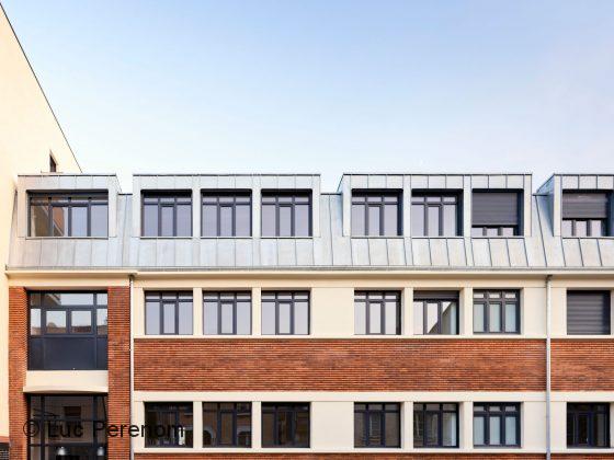 La transformation d’une ancienne usine de fonderie d’or, construite en 1937, en logements sociaux – du T1 au T4 – participe à la création d’un nouvel écoquartier à Bagneux. Ce programme est situé à proximité de la gare du métro ligne 4 du Grand Paris et de la station de RER B Arcueil-Cachan. Composé d’un bâtiment en brique et béton et d’une villa accolée (l’ancienne demeure du directeur qui reste une propriété privée), cet ensemble industriel constitue un repère historique dans le quartier. Le bâtiment ancien a été entièrement restructuré dans le respect de son architecture d’origine, mais aussi surélevé pour accueillir 11 logements. Une extension a été créée pour proposer 10 logements supplémentaires. L’extension utilise les mêmes codes architecturaux afin de renforcer le caractère industriel du site et de créer un dialogue entre les deux bâtiments. Un jardin commun a été créé côté cour. La toiture terrasse du bâtiment neuf a été végétalisée. L’ensemble répond à la RT 2012 – 10 % et à la certification CERQUAL NF HQE.