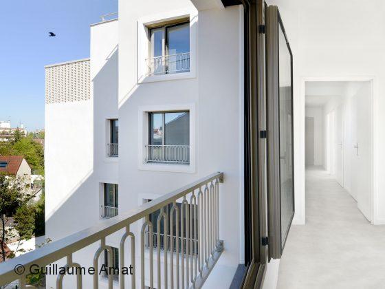 Le programme répond à plusieurs objectifs : participer à l’évolution urbaine de la zone, respecter la « trame verte » de la ville dans laquelle il s’inscrit mais aussi garantir un confort thermique au sein d’un bâtiment peu énergivore, en vue de réduire les charges locatives. Ce programme en R+4 propose 16 logements (6 PLUS, 5 PLAI et 5 PLS). Le projet a permis l’expérimentation d’un mode constructif innovant pour les menuiseries extérieures : celles-ci sont préfabriquées et constituées d’un bloc-baie fini en usine, posé au fur et à mesure de l’avancement, permettant ainsi de gagner deux mois environ sur le temps de chantier. Le bâtiment est équipé de panneaux photovoltaïques en toiture, participant à la réduction des charges des parties communes. Le programme est conforme à la RT2012 – 20  % et certifié NF Habitat HQE.