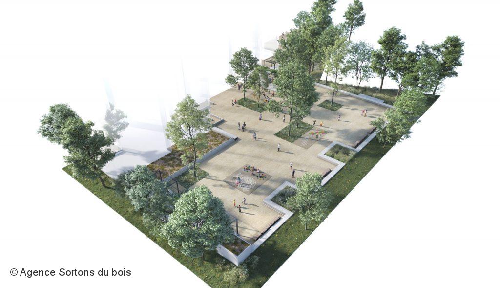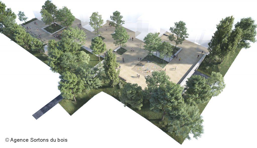 Le programme de végétalisation initié en concertation avec les habitants et habitantes consiste à créer des fosses à arbres et à mettre en place des pergolas pour ramener la végétation sur les dalles depuis la pleine terre. L’originalité vient de la manière de faire pousser cette végétation : les fosses en pleine terre occuperont l’espace libéré par des places de parking en sous-sol, supprimées à l’occasion de travaux il y a quatre ans. C’est donc dans ces places vacantes que prendront racine les plantes à graminées et arbustes. Le concept a été imaginé par l’agence d’urbanisme-paysage Sortons du Bois.